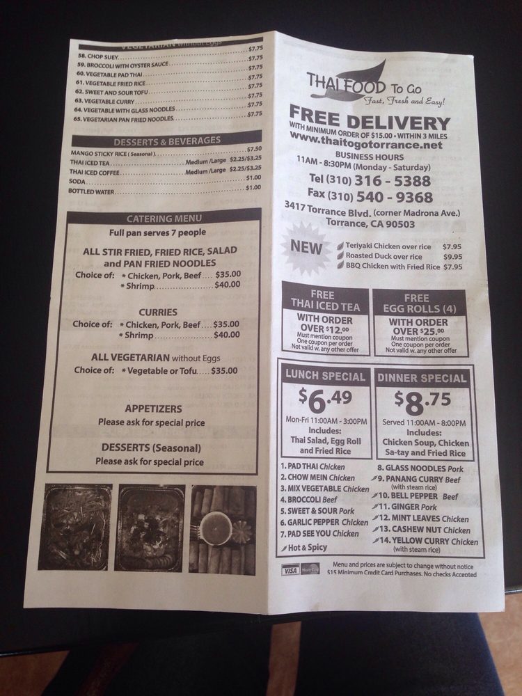 Welcome to Thai Food To Go, where the delightful essence of Thai cuisine meets convenience. Nestled at 3417 Torrance Blvd, this unclaimed gem specializes in an array of delicious offerings, from flavorful noodles and hearty soups to a variety of enticing vegetarian dishes.